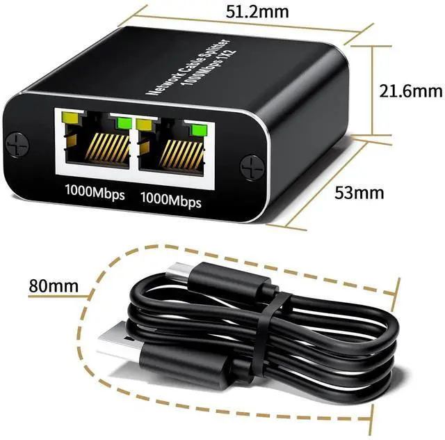 ![Alt view image 5 of 6 - Gigabit Ethernet Splitter 1 to 2, 1000Mbps Ethernet Cable Splitter, Rj45 Internet Splitter with USB Power Cable, LAN Splitter for Cat5/5e/6/7/8 Cable [2 Network Out at Once | Plug&Play]](https://c1.neweggimages.com/productimage/nb640/B4D1D2602080IMCFZ08.jpg)