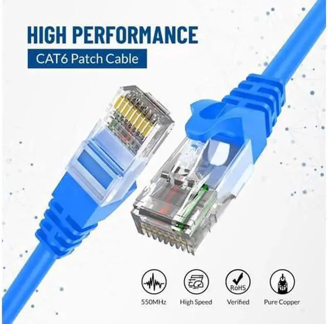 Vszerda Cat6 Ethernet Patch Cable RJ Pure Bare Copper Wire LAN Network Internet Patch Cord Internet Router 10-Pack Blue 15ft
