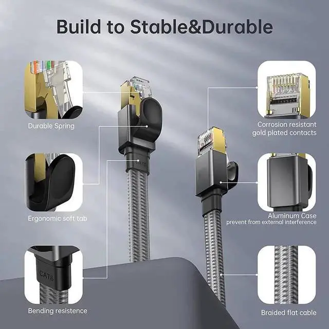 High Speed ethernet cable: Our Cat 8 ethernet cable supports bandwidth up to 2000MHz and 40Gbps data transmission speed, ensuring stable network speed for you to online gaming, surf the Internet, online HD video streaming and more.
