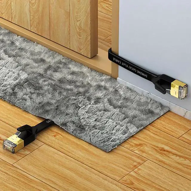 Flat Cat 7 cable save space if you don't need the entire length. Easy to run under the carpet or line up against the wall. Also avoid getting entangled, can be used for any environment