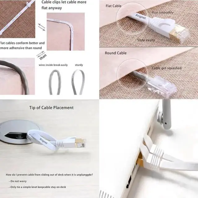Flat Cat 7 cable save space if you don't need the entire length. Easy to run under the carpet or line up against the wall. Also avoid getting entangled, can be used for any environment