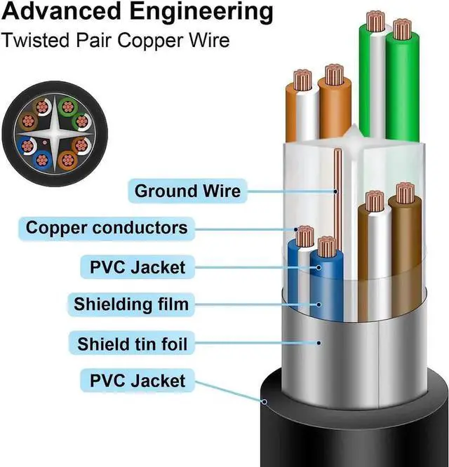 MULTI-SHIELDED Cat6 STANDARD: Ethernet extension cable is with gold-plated connector, premium aluminum mylar foil and tinned copper braid shielding; 8 wires Stranded Copper with foil shielding, better than copper clad aluminum (CCA) wire; It conforms to the Category 6 TIA/EIA 568-C. 2 standard.