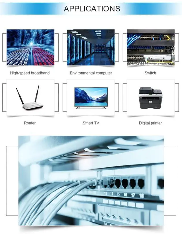 With two shielded RJ45 connectors at both ends, the Cat8 Ethernet cable works perfectly with networking switch, IP Cam, routers, ADSL, Adapters, Modem, Patch panel, Servers, Networking Printers, NAS, VoIP phones, laptop, Coupler, Hubs, Keystone jack, Smart TV, Imac and other device with RJ45 connectors. Also compatible with Cat7/Cat5/Cat5e/Cat6/Cat6e.