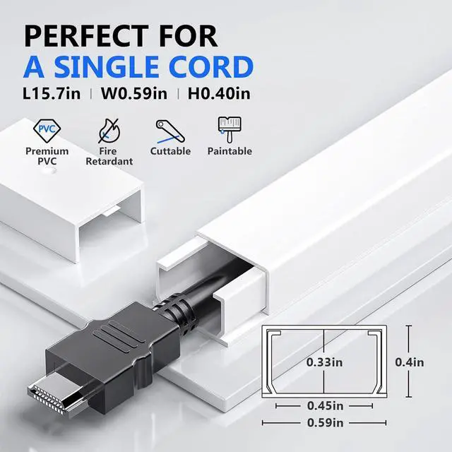 One-Cord Channel Cord Hider: This is the perfect choice when you only have one cable to hide. Designed to enclose a low-voltage wire or cable such as phone/fax cable, speaker cable, lamp cord, Cat-5 or Cat-6 ethernet cable, etc (Internal size is W 0.45 H 0.33 in)