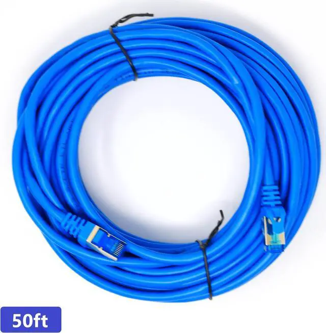 QualGear RJ45 Cat 7 Ethernet Patch Cable, 10Gpbs High-Speed Cable, 600MHz, Triple-Shielded, 50 ft, Blue, Round
