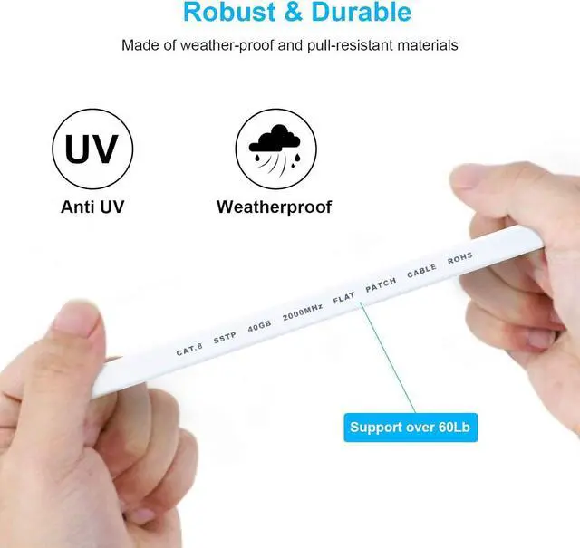 FLEXIBLE & DURABLEFlat cables are more flexible and adhesive on ground or desk, which can be run under the carpet or bent through corners or into desk. This will help you save space in office, home, etc. It is convenient to place your Ethernet cable everywhere, and maintain a concise appearance. It is flexible, thin, but very durable and stable.