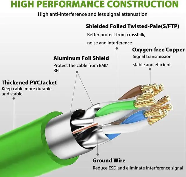 Lightning-fast Transmission: The CAT8 Ethernet patch cable up to 2000MHz frequency and boosts the speed of data transmission up to 40Gbps over distances up to 100 feet. Double shields (S/FTP) to avoid interference and data losses, critical in extreme performance applications, such as E-sports games, 4K video streaming and data centers.