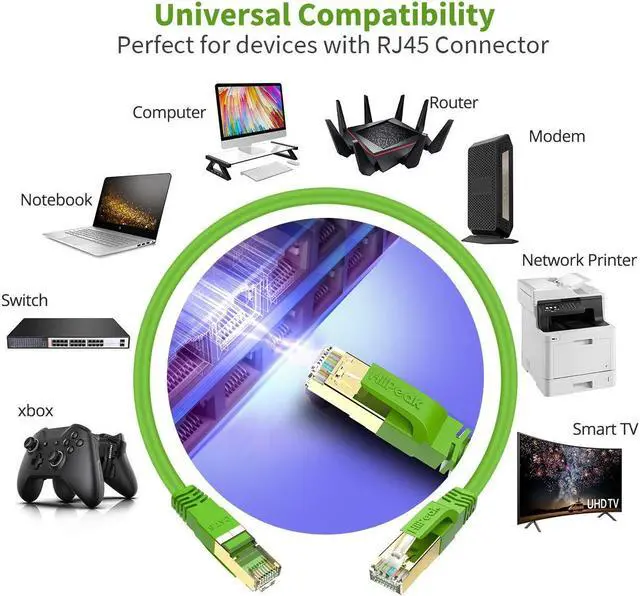 High Compatibility & Wide Application: Backward compatible with Cat 5e, Cat 6, Cat 6a and Cat 7 cabling products. Specifically designed for data centers, server applications and other high-performance computer networking applications; Ideal for gaming devices, Xbox, Routers, Switches.