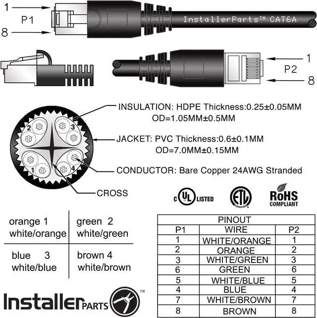 High Quality 100% Copper: Installerparts Patch Cables Are Made Of 100% Bare Copper Wire With 50 Micron Gold Plated Rj45 Plugs. Our Cables Use High Quality, Long-Lasting Materials And Feature A Highly Durable Design At An Affordable Price.