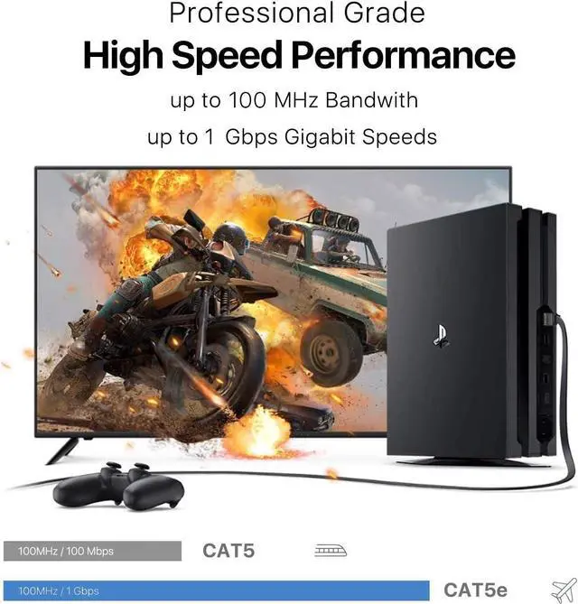 High Performance Ethernet cable CAT 5e Universal Compatibility - Cat5 8P8C modular RJ45 connectors Ethernet Patch Cable provides universal connectivity for LAN network cables components such as PCs, computer servers, printers, routers, switch boxes, network media players, NAS, VoIP phones, PoE devices, and more