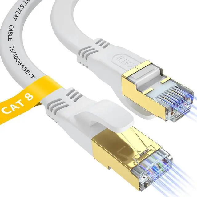 • Cat8 internet cable is compatible with Cat5, Cat5E, cat6, cat6A and Cat7 devices, and is applicable to network switches, routers, modems, PS3, PS4, X-boxes, patch panels, servers, network printers, laptops, couplers, hubs, Smart TV and any other devices with RJ45 connectors.The external material is made of environmentally friendly PVC, which meets the EU REACH and ROHS environmental regulations.