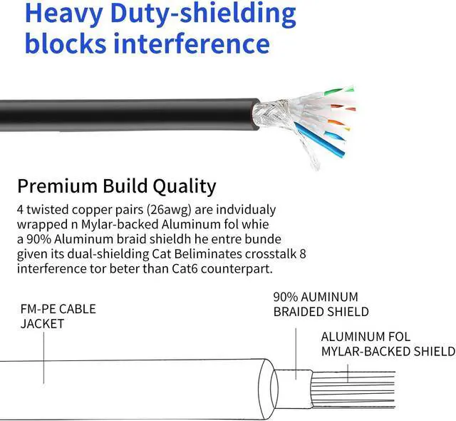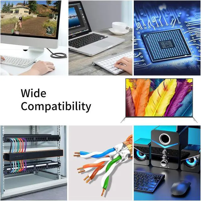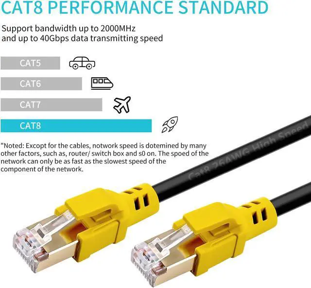 WIDE APPLICATION The CAT8 LAN cable fully compatible with older CAT7, CAT6, CAT6e, CAT5, and CAT5e cable standards. Perfect for Network Adapters, PC, Laptop, Hubs, Routers, DSL / Cable Modems, PS, Switch, patch panels, and other high-performance networking applications.