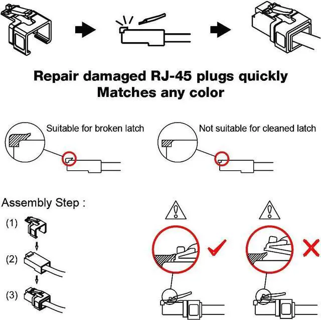 Clear plastic matches any color or type of RJ-45 plugs | Includes user manual with simple instructions