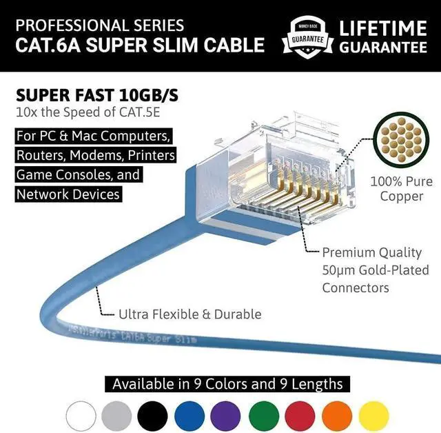 • Maximum Compatibility: Use The Cat6 Slim Patch Cable To Connect Devices On A Local Area Network (Lan), Such As Laptops, Pcs And Mac, Computer Servers, Printers, Modems, Routers, Switch Boxes And More. Tia/E