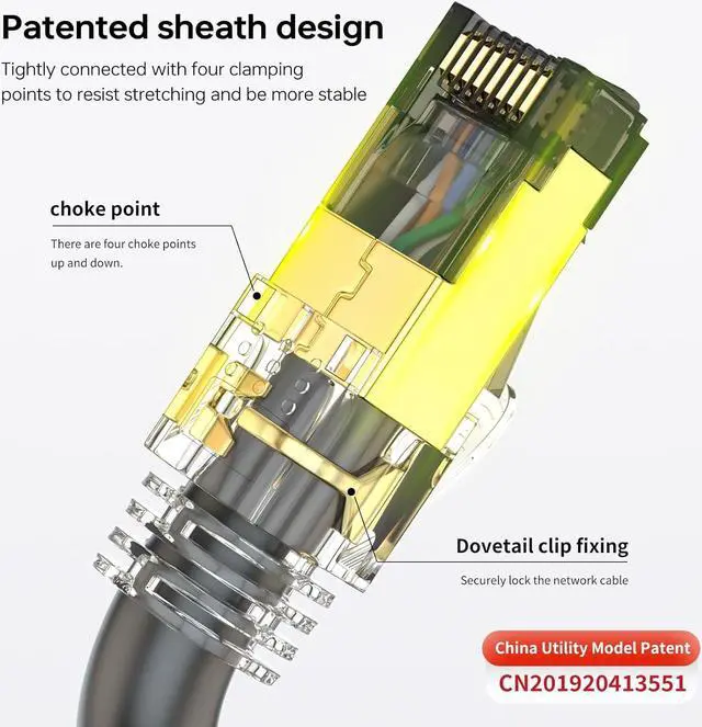 Softer and Durable DesignThe shell of Cat 8 cables are made of environmentally friendly special PVC material, which is waterproof and UV resistant. Suitable for outdoor and indoor use. The special towing materials can be used to the joints of the robot