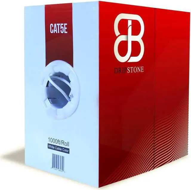 Dripstone CAT5e 1000ft 24AWG Solid UTP Unshielded Ethernet Cable RJ45 CCA Bulk Network LAN Wire RJ45 Easy Pull Box 305M (White)