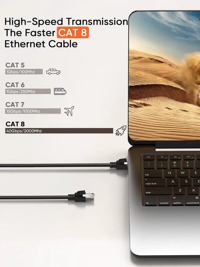 Ultra speed of Upload & Download: Cat8 ethernet extension cable supports bandwidth up to 2000MHz and boosts the speed of data transmission up to 40Gbps, Allow you to stream HD videos, music, surf the net, play games at Hyper Speed.