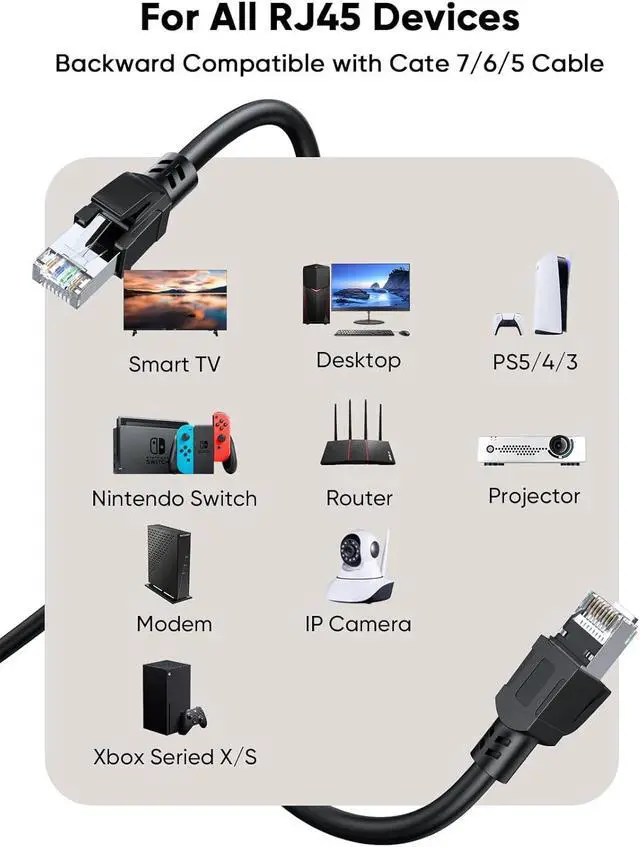 Compatibility and Application: Perfect suitable for PC, IP Cam, routers, Nintendo switch, ADSL, Adapters, Modem, PS3, PS4, X-box, Patch panel, Servers, Networking Printers, Smart TV and other device with RJ45 connectors. Perfectly compatible with all the previous(cat5, cat5e, cat6, cat6a and cat7) ethernet devices. Particularly suitable for computer data centers, cloud server centers, cloud servers, enterprise servers and enterprise ethernet switches.
