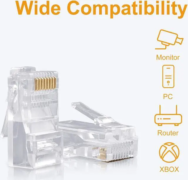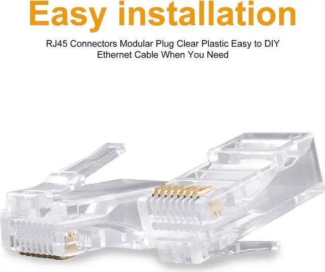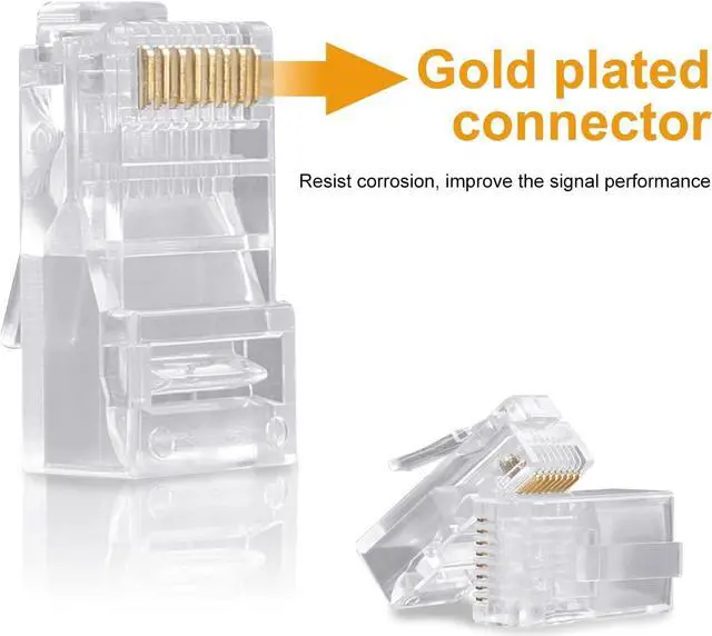 100PCS RJ45 Connectors per Bag-Clear Color 8P8C UTP Solid Crimp Connector Crystal 50 micron Gold Plating Connectors For CAT5 CAT5E CAT6 Solid or Stranded Cable The Internal Cable Cannot be Removed after Being Fixed