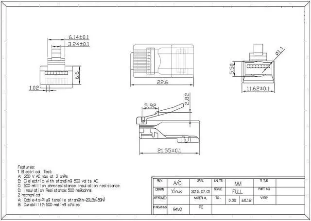 100 PCS RJ46 cat6 connectors have a maximum diameter of 1.10 mm and an outside diameter of up to 5.8 mm. Support 24 to 26 AWG round or flat network cable, CAT6 23awg is supported for solid cable only!