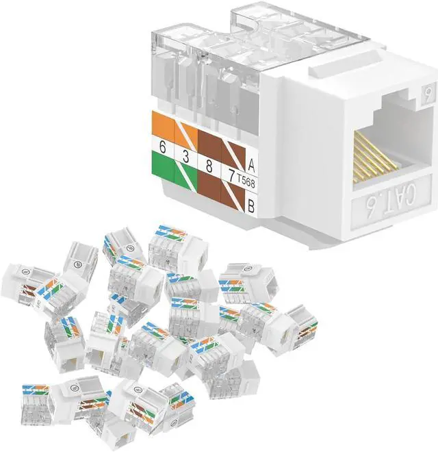 EASY TO INSTALL: The color labeling on the cat6 jack can help you avoid wrong wire lining problems and waste. The sharp IDC terminates can hold wires firmly in place. The keystone jack is also reusable, so it' s cost-effective and convenient for you to replace the ethernet cables.