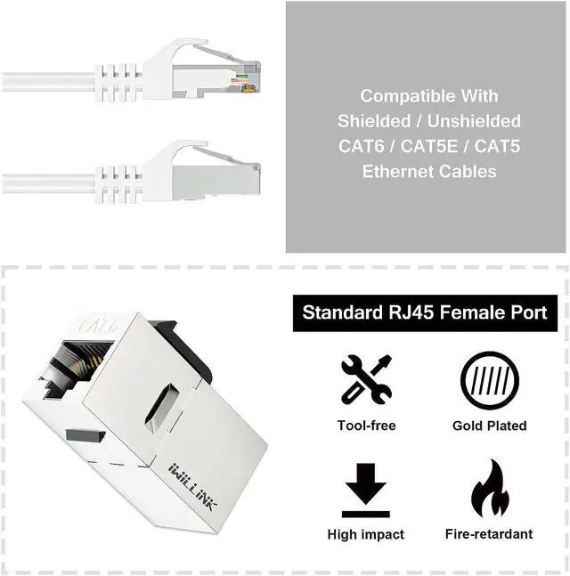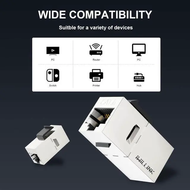 Extend Ethernet ConnectionThe Cat6 RJ45 coupler allows you to connect two Cat 6 ethernet cables effortlessly. No more worries about short cables.