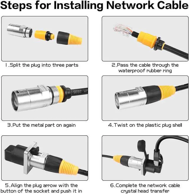 High Performance: The waterproof RJ45 socket connectors comply with TIA/EIA 568B and ISO/IEC 11801 Cat 6 standards for repairing outdoor CAT5/5E/6 cables, and can also be used to extend existing cables.