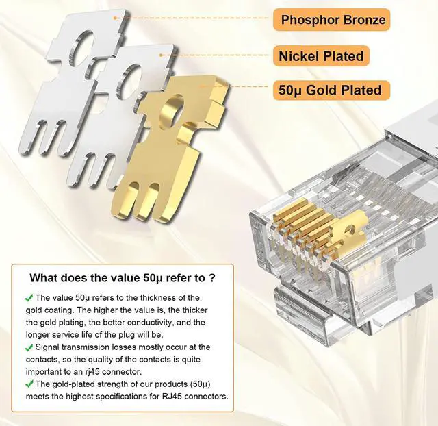 50u Gold-Plated Contacts: 3-Prong contacts can increase the contact area and enhance conductivity. Apply thicker and well-proportioned gold-plated contacts to ensure stronger, more stable transmission. The boots' material is new environmentally friendly material PVC, which is durable, flame-retardant, and resistant to bending.