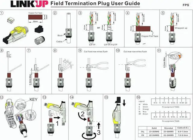 Highly CompatibleSupports 23 to 26 AWG shielded wire with outside diameters between 6.0 mm and 7.5 mm. PoE PLUS COMPLIANT for IEEE 802.3 at Power over Ethernet (PoE+) applications. IDC modules can be wired for T568A or T568B configurations.