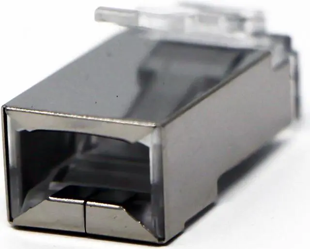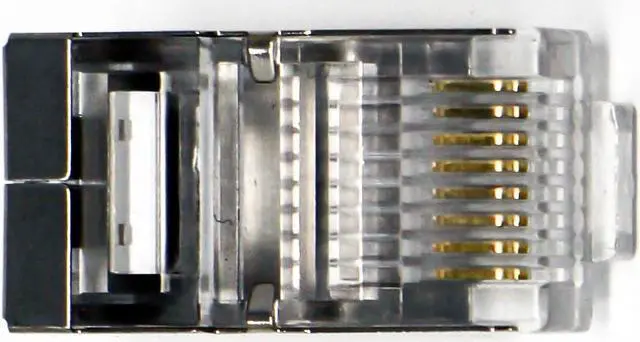 RJ45 sockets aluminium metal shield STP - Shielded Twisted Pair - shielding your network prevents signal loss and electromagnetic EMI/RFI interference and maintains a proper ground connection
