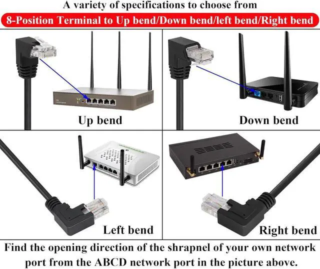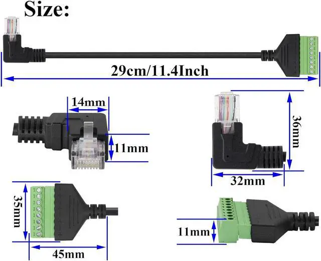 This 90 Degree (Right Bend) RJ45 male crystal head to 8Pin terminal is solder-free network cable, wireless extension can be connected to external network cables, stable butt welding-free extension.