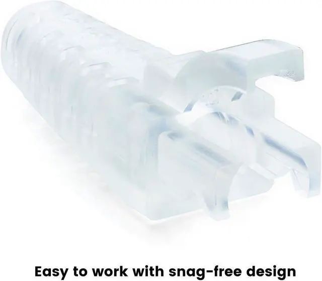 DUAL PURPOSE SNAGLESS DESIGN. Provides strain relief while protecting your ethernet cable and RJ45 connector.