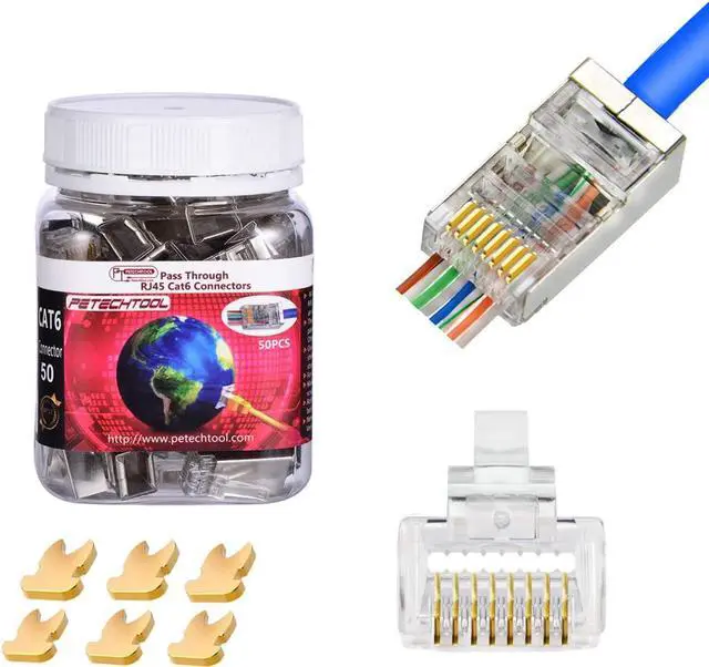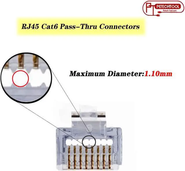RJ45 Pass Through design allows the wires to pass through the connector so the twists in each pair can be pulled closer to the contacts than conventional plugs. These connectors fit cat624awg cable, if you are making cat6 23awg cable, Pls choose another 23awg type in our store.