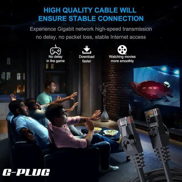 For optimal performance, you need a quality Cat 6 cable, yet some ethernet cord options lack proper shielding & conductors to make high speeds possible. At G-PLUG, were committed to bringing you a reliable & high speed ethernet cable for seamless connectivity. With stringent quality control on every LAN cable high speed gaming cord to ensure youre getting the best cat6 cable possible.