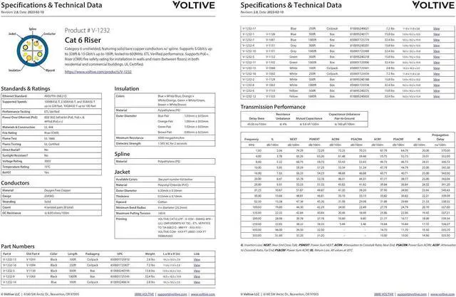 Construction: UL 444, CSA 22.2 No. 214, RoHS. Includes Voltive 20 year warranty.