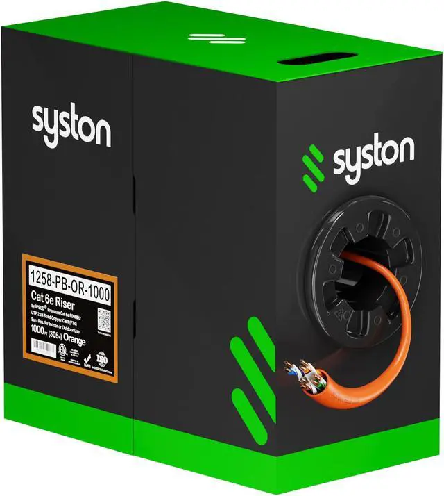 SYSTON CABLE TECHNOLOGY CAT 6E Ethernet Bulk Cable, 600MHz, 23/4pr Solid CU, CMR, Indoor/Outdoor 1000 ft. Orange