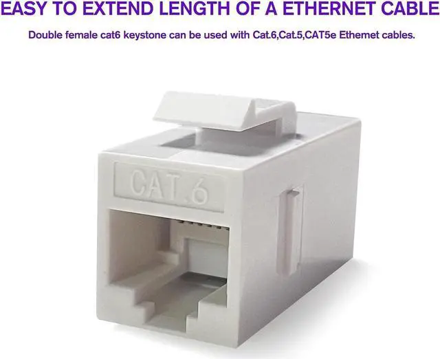 Double female RJ45 connectors - This inline coupler connects two separate category 5e/6 cables (depending on the type you purchased) via an RJ45 keystone coupler. Double female Cat6 keystone can be used with Cat6, Cat5, CAT5e Ethernet cables.