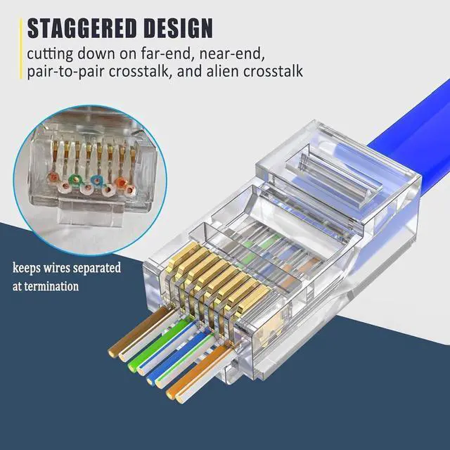 50-pack of RJ45 Cat6 Cat6a connectors - Provide enough Ethernet connectors while home decoration wiring or add new network devices, allowing you to create your own Ethernet cables in custom length easier.