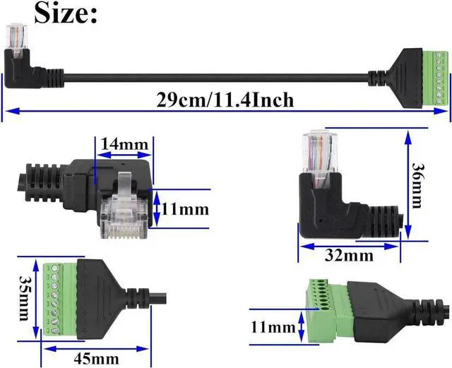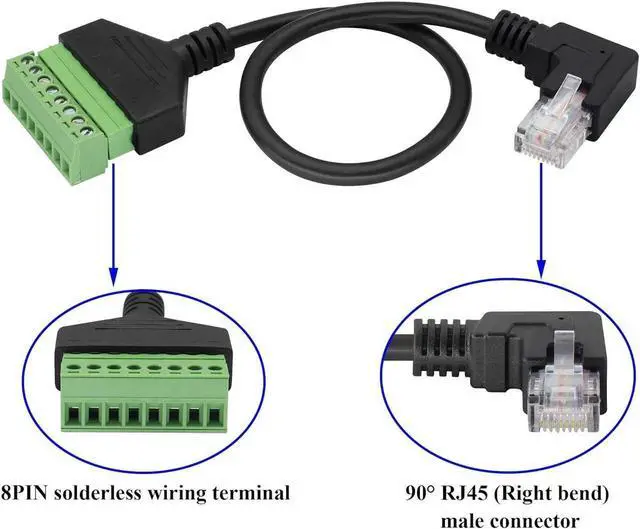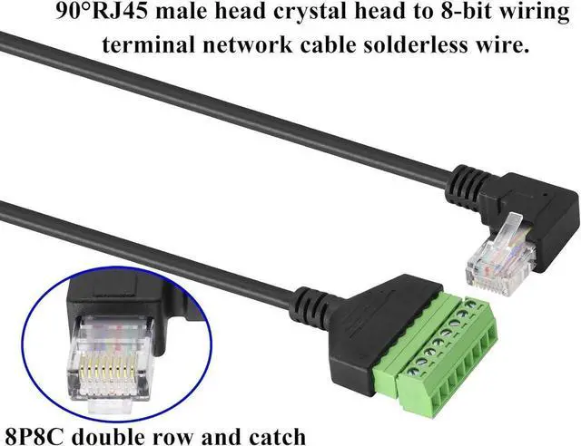 This 90 Degree (Right Bend) RJ45 male crystal head to 8Pin terminal is solder-free network cable, wireless extension can be connected to external network cables, stable butt welding-free extension.
