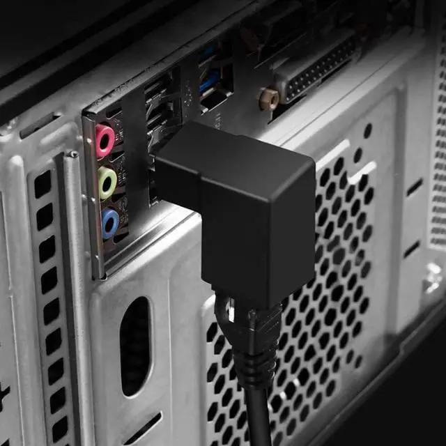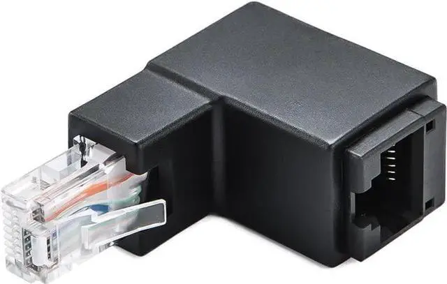 90 Degrees Up Angle With it, it is more convenient to use RJ45 port to connect network equipment. It can be used in narrow spaces like behind furniture or behind a TV. Avoid continuous plugging and unplugging of network ports, prevent the Ethernet cable from bending and causing damage.