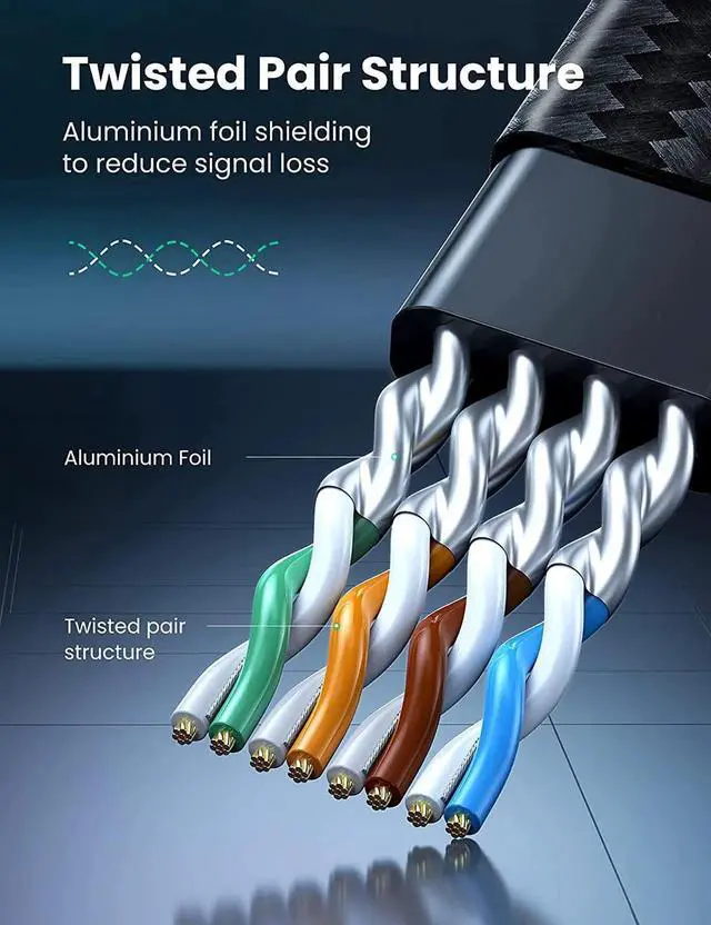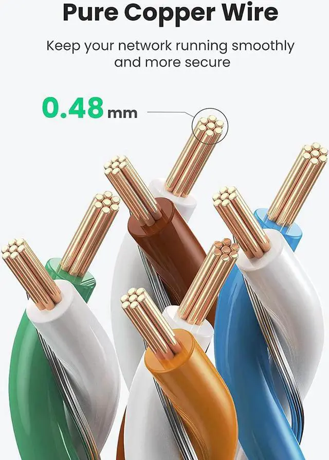 Excellent Anti-interference: UGREEN Cat 8 internet cables are designed with 4 shielded foiled twisted pairs (U/FTP), 26AWG pure copper core and gold-plated connectors. This design can greatly reduce interference and crosstalk from adjacent pairs and other cables, making network speed faster and more stable.