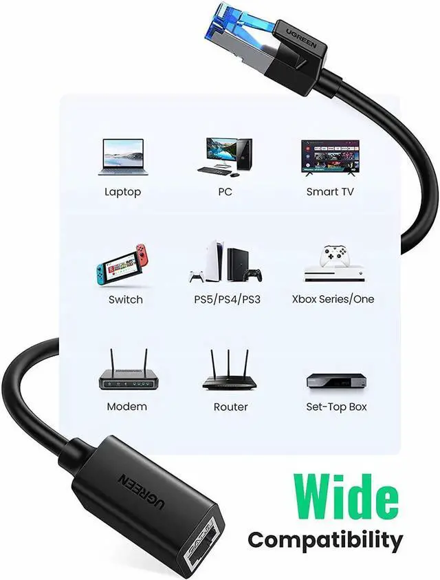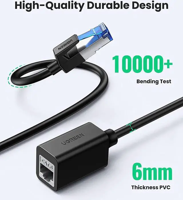 40Gbps 2000MHz Hyper Speed: UGREEN Cat 8 extension cable supports bandwidth up to 40Gbps/2000MHz, which is 4x faster than CAT 7. Bring your superior experience to enjoy games, HD video, music, upload and download at ultra-high speed.