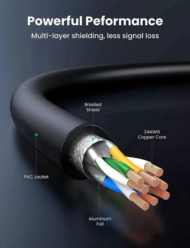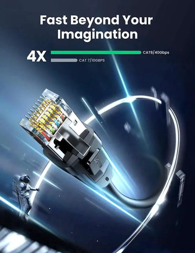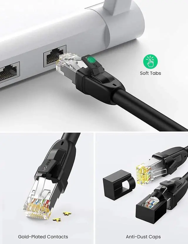 Widely Compatible: With the RJ45 connectors, UGREEN Cat 8 internet cables is universally compatible with networking switches, computers, laptops, routers, ADSL, network adapters, hubs, modems, PS5, PS4, X-box 360, X-Box One, Switch, patch panels and other networking devices.