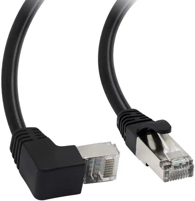 Bend up, down, left, and right Ethernet jumpers provide a solution for connecting in narrow spaces behind furniture or in network closets. Connect the 90-degree upward or downward sloping end to the RJ45 port of the device or the network LAN port; use an angled Ethernet cable instead of excessively bending the straight jumper.