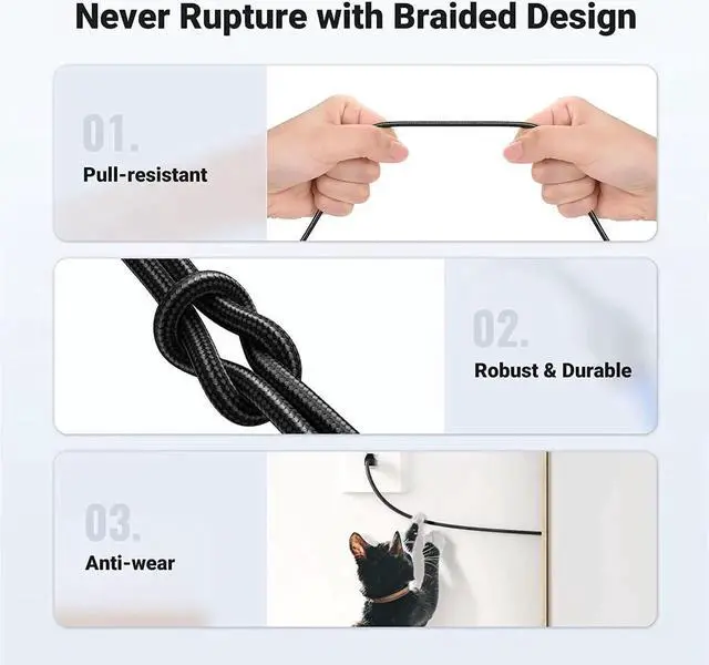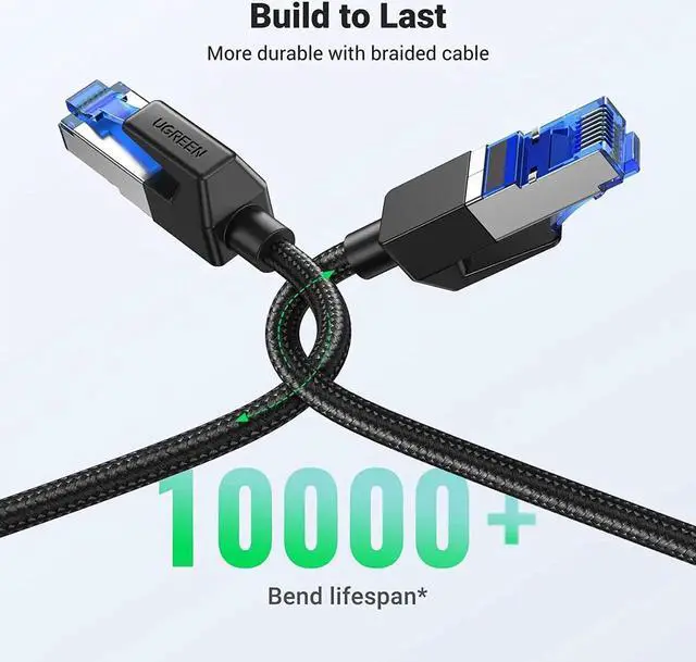 Durable Braided Design: UGREEN Cat 8 ethernet cable wrapped with quality cotton braided cord, which makes the LAN cable stronger and more durable. The test proves that this internet cable can be bent at least 10000 times without broken, very suitable for long-term use.