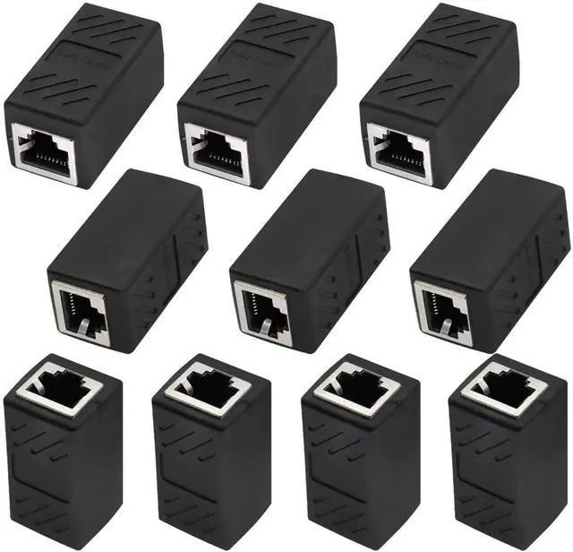 RJ45 Cat6 Adapter Ethernet Cable Extender Cat6 Female to Female Inline Network Cable Coupler Cat6 Cat5 Cat5e Ethernet Coupler Adapter (Black-10Pack)