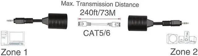 RJ45 Female Features: Set of 2 audio baluns - 1 receiver and 1 transmitter Maximum of 240 ft cable length For analog stereo audio