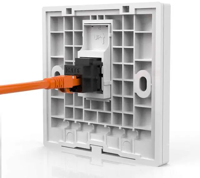 Fits all standard keystone wall-plates: Cat6 RJ45 Keystone jack in-line coupler installs in patch panels, surface mount boxes, or keystone wall plates (face plates) with standard keystone ports