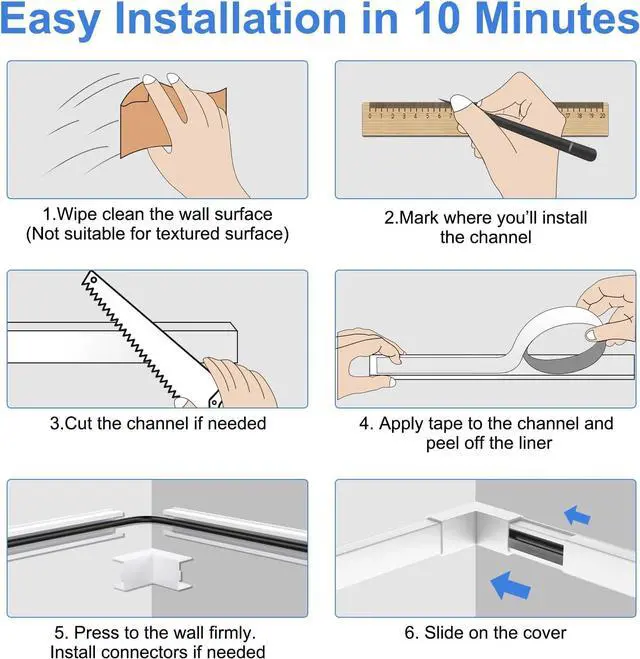 STRONG ADHESIVE TAPE FOR SAFE INSTALLATION! Our wire hider kit includes clear PE mounting tape with strong adhesive properties, ensuring secure attachment along your walls or desks and making it a dependable choice among wire covers for cords on wall options