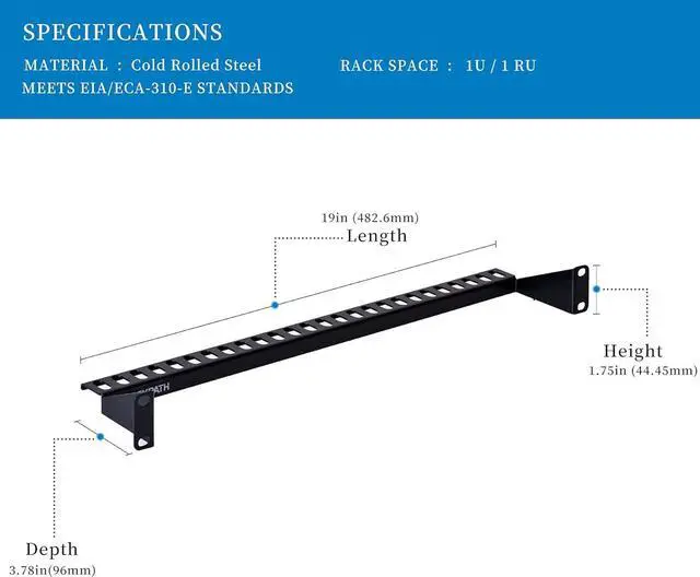 Dimensions: 1.75 in H x 19 in W x 3.78 in D